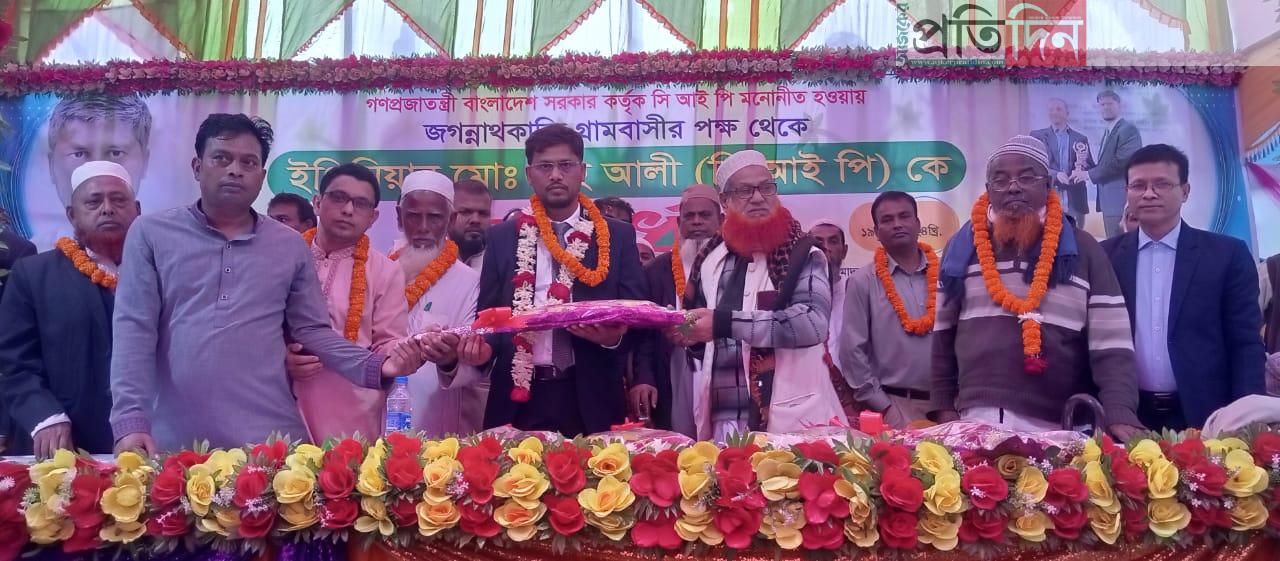 এসময় তিনি মাদ্রাসা শতাধিক শিক্ষার্থীর নতুন বছরের পোষাক দেয়ার ঘোষণা দেন।সম্প্রতি গণপ্রজাতন্ত্রী বাংলাদেশ সরকার কর্তৃক সিআইপি নির্বাচিত হওয়ায় কুমিল্লার হোমনা উপজেলার কৃতি সন্তান, বিশিষ্ট দানবীর ইঞ্জিনিয়ার মো. শাহ আলী সিআইপিকে এ সংবর্ধনা দিলেন জগন্নাথকান্দি মাথাভাঙ্গা গ্রামবাসী।এর আগে সকালে এলাকার বিভিন্ন স্তরের মানুষ গৌরীপুর বেইলি ব্রীজ থেকে শতাধিক মোটরসাইকেল, অর্ধশতাধিক সিএনজি ও প্রাইভেটকারে বিশাল শোভাযাত্রার মাধ্যমে উদিয়মান তরুণ উদোক্তা ও সমাজহিতৈষী ইঞ্জিনিয়ার মো. শাহ আলী সিআইপিকে বরণ করেন ও ফুল দিয়ে শুভেচ্ছা জানান।প্রিন্সিপাল মাওলানা দেলোয়ার হোসেন এসলাহীর সভাপতিত্বে প্রধান অতিথির বক্তব্য রাখেন, সংবর্ধিত অতিথি ইঞ্জিনিয়ার মো. শাহ আলী সিআইপি।