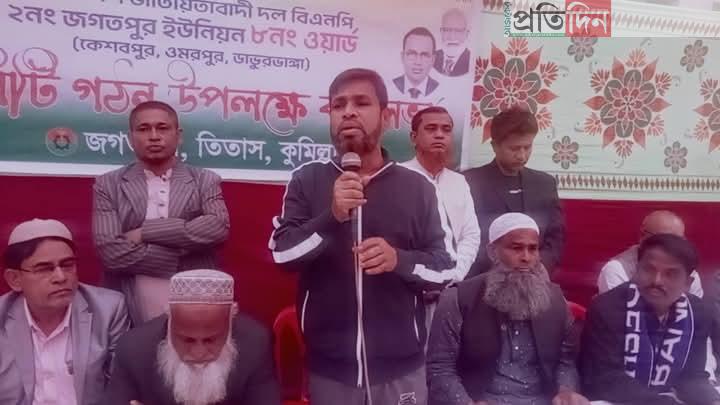 কুমিল্লার তিতাসের জগতপুর ইউনিয়নের ৮নং ওয়ার্ড বিএনপির কমিটি গঠন উপলক্ষে আলোচনা সভা অনুষ্ঠিত হয়েছে। গত মঙ্গলবার বিকেল তিনটায় কেশবপুর সরকারি প্রাথমিক বিদ্যালয় মাঠে এই আলোচনা সভা অনুষ্ঠিত হয়।