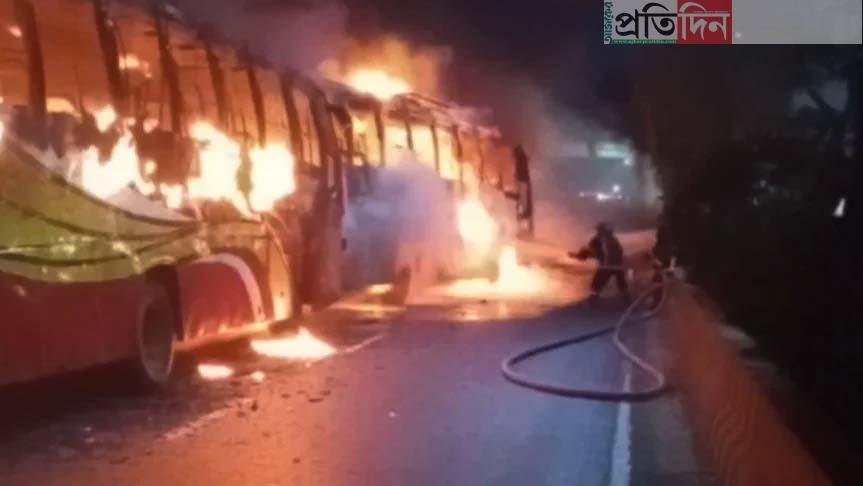 সাভারে বাস-অ্যাম্বুলেন্স সংঘর্ষে আগুন, পুড়ে নিহত ৪