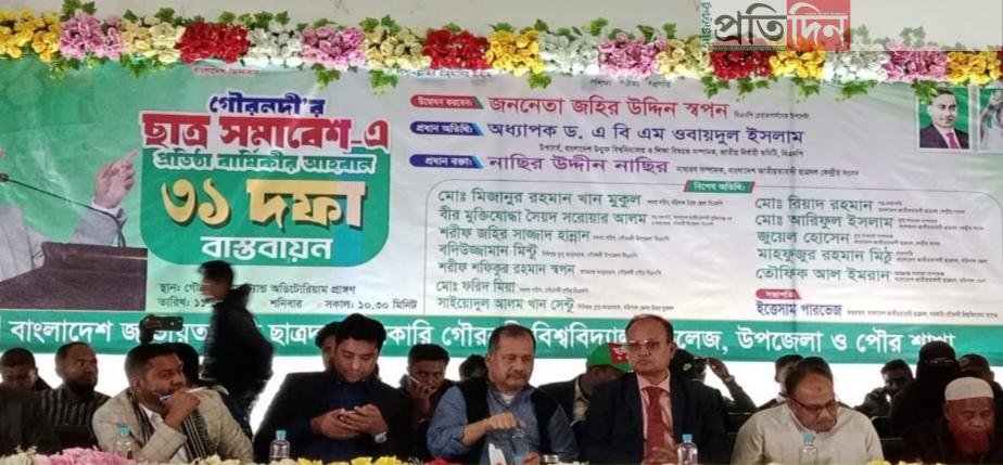 গৌরনদী উপজেলা, পৌর ও সরকারি গৌরনদী কলেজ ছাত্রদলের আয়োজনে শনিবার সকালে উপজেলা চত্বর থেকে র্যালী বের হয়ে বিভিন্ন সড়ক প্রদক্ষিন করে।
