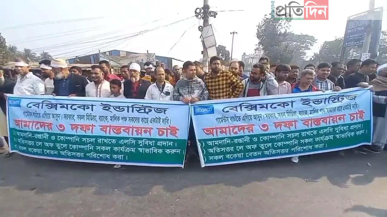 জিরানি বাজার এলাকায় অবস্থান করা টিম লিডার ও কারখানাটির শ্রমিক হাবিবুর রহমান বলেন, আমাদের প্রাণপ্রিয় প্রতিষ্ঠান বেক্সিমকো ইন্ডাস্ট্রিয়াল পার্কের সব কারখানার ব্যাংকিং ব্যবস্থা পুনরায় চালু করার পাশাপাশি অন্যান্য বকেয়াগুলো দিতে হবে। আমাদের দাবি আদায় না হলে পুনরায় নতুন কর্মসূচি দেওয়া হবে।