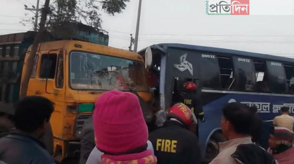 নরসিংদীতে ট্রাক-বাসের ত্রিমুখী সংঘর্ষ, গুরুতর আহত ৮