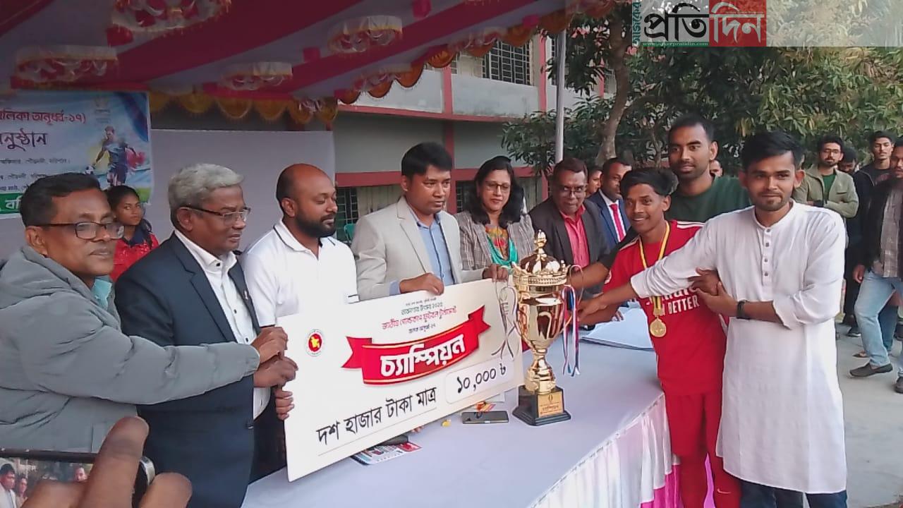 উভয় দলের খেলোয়াড়দের মাঝে পুরস্কার বিতরণ করেন প্রধান অতিথি গৌরনদী উপজেলা নির্বাহী অফিসার ও পৌর প্রশাসক মোঃ আবু আবদুল্লাহ খান।