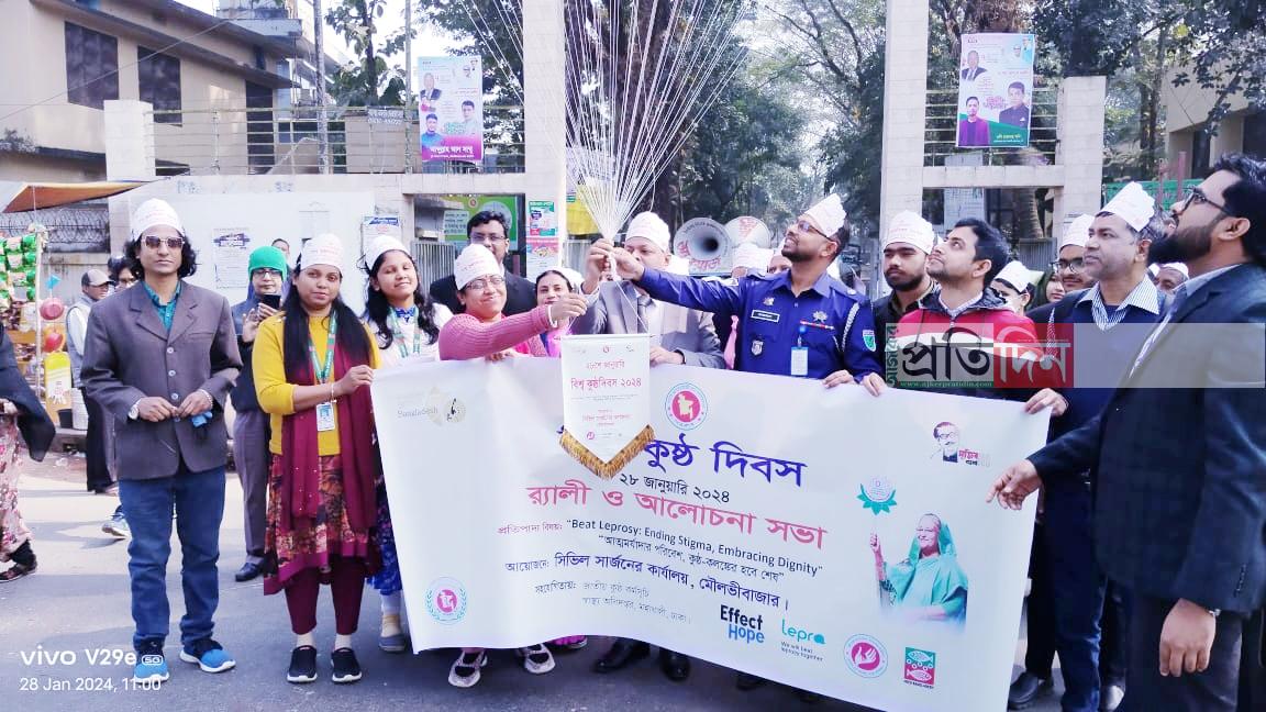 বিশ্ব কুষ্ঠদিবস ২০২৪ উপলক্ষে মৌলভীবাজার সিভিল সার্জন কার্যালয়ের উদ্যোগে এবং সহযোগী সংস্থা লেপ্রা বাংলাদেশ এবং হীড বাংলাদেশ এর সহায়তায় আয়োজিত র্যালীর উদ্বোধন শেষে সিএস অফিসের সম্মেলন কক্ষে আলোচনা সভায় সভাপতির বক্তব্যে উপরোক্ত বক্তৃতা প্রদান করেন মৌলভীবাজারের সিভিল সার্জন চৌধুরী জালাল উদ্দীন মুর্শেদ। সি এস অফিসের প্রোগ্রাম অর্গানাইজার ডাক্তার মোহাম্মদ আবদুর রব জাকারিয়া এর পরিচালনায় স্বাগত বক্তব্যে মৌলভীবাজার সদর উপজেলা স্বাস্থ্য ও পরিবার পরিকল্পনা কর্মকর্তা ডাক্তার বর্ণালী দাশ বলেন মাননীয় প্রধানমন্ত্রীর নির্দেশনা অনুসরণে আমরা গুরুত্ব দিয়ে কুষ্ঠ নির্মূলে এগিয়ে যাচ্ছি। কুষ্ঠ কোনো অভিশাপ নয় ইহা ১টি রোগ।