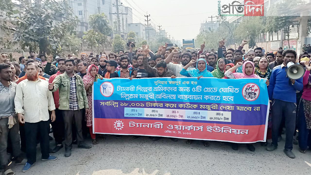 সাভারে ট্যানারি শ্রমিকদের ন্যূনতম মজুরি বাস্তবায়নের দাবি