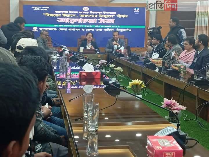 বৃহস্পতিবার (৩০ জানুয়ারি ) সকালে ২০২৫ ঠাকুরগাঁও জেলা প্রশাসন ও জেলা তথ্য অফিসের উদ্যোগে জেলা প্রশাসকের সম্মেলন কক্ষে তারুণ্যের উৎসব ২০২৫ উদযাপন উপলক্ষ্যে বিজয়ের উল্লাসে, তারুণ্যের উচ্ছ্বাসে শীর্ষক আলোচনা সভার আয়োজন করা হয়।