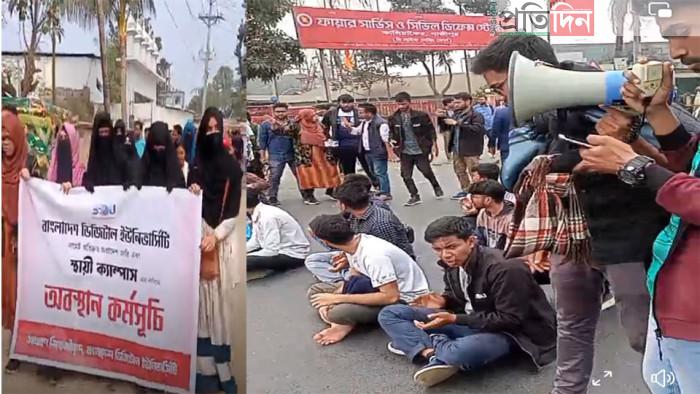 বঙ্গবন্ধু ডিজিটাল ইউনিভার্সিটির শিক্ষার্থীদের সড়ক অবরোধ