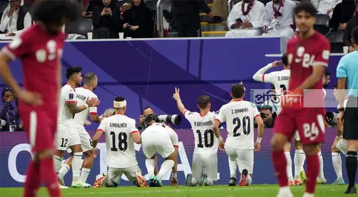 এশিয়ান কাপের শেষ ষোলোতে আল বাইত স্টেডিয়ামে ফিলিস্তিনকে ২-১ ব্যবধানে হারায় কাতার। শুরুতেই ফিলিস্তিনকে ওদেই দাববাঘ এগিয়ে নেওয়ার পর কাতারকে সমতায় ফেরান হাসসান আল হায়দোস। বিরতির পর আকরাম আফিফ জয়সূচক গোলটি করেন।
