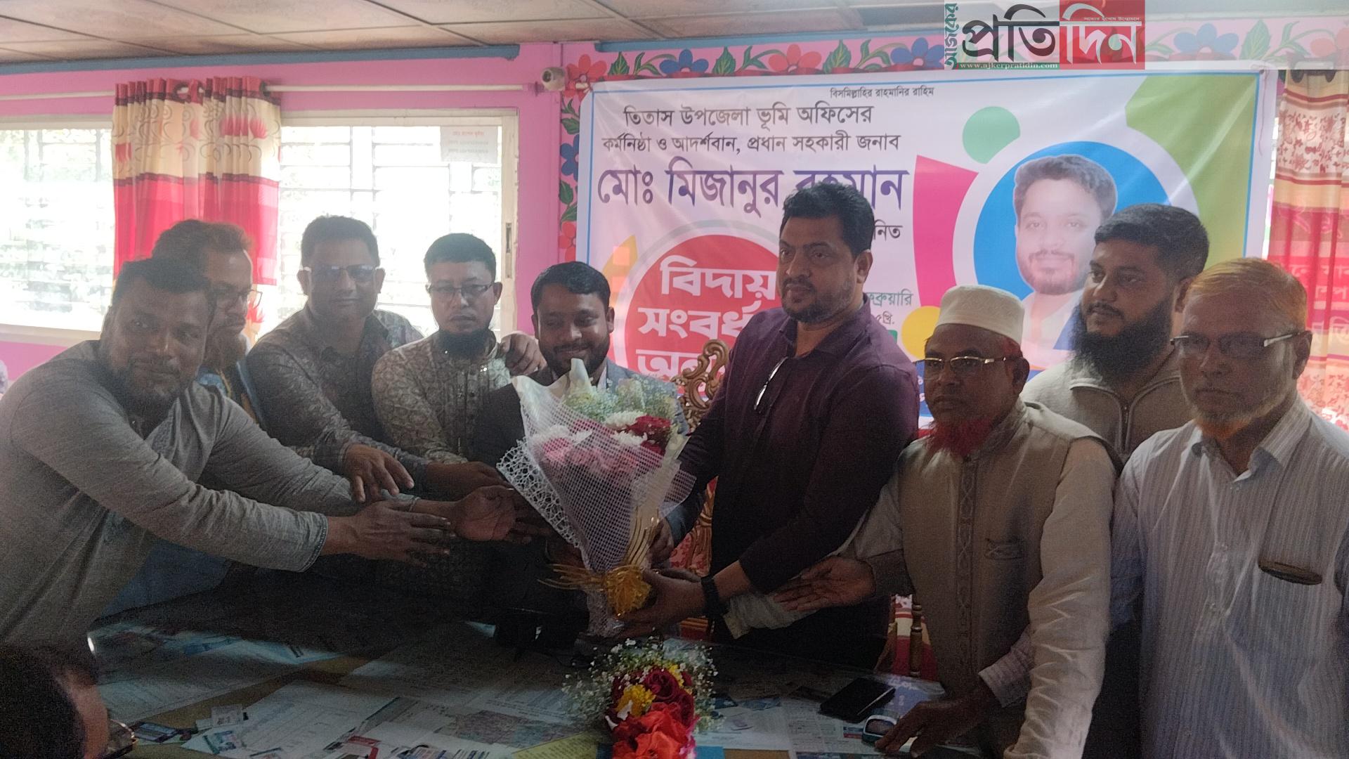 তিতাসের ভূমি অফিস প্রধান সহকারীকে বিদায় সংবর্ধনা