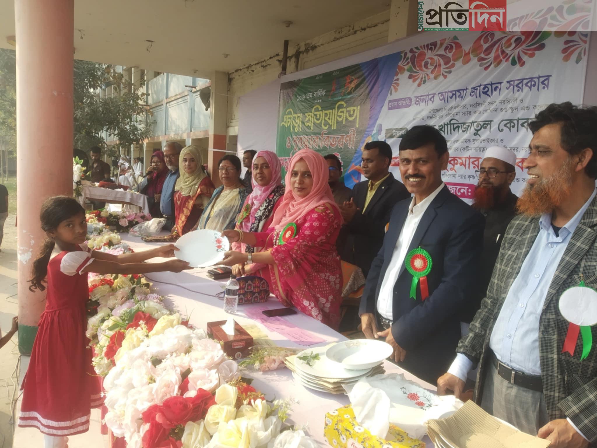 নরসিংদীর শতবর্ষে ঐতিহ্যবাহী পাঁচদোনা স্যার কৃষ্ণ গোবিন্দ গুপ্ত স্কুল এন্ড কলেজের ১০৬ তম বার্ষিক ক্রীড়া প্রতিযোগিতা ও পুরষ্কার বিতরন অনুষ্ঠিত হয়েছে। বৃহস্পতিবার বিদ্যালয়ের মাঠে জাতীয় পতাকা উত্তোলন ও মশাল জ্বালিয়ে বার্ষিক ক্রীড়া প্রতিযোগিতা উদ্বোধন করেন উপজেলা একাডেমিক সুপারভাইজার ও উপজেলা মাধ্যমিক শিক্ষা অফিসার (রুটিন দায়িত্ব) খাদিজাতুল কোবরা ।