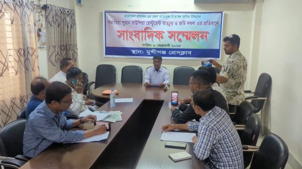 মুন্সিগঞ্জে স্থাপনা গুড়িয়ে দিয়ে জমি দখলের প্রতিবাদে সংবাদ সম্মেলন