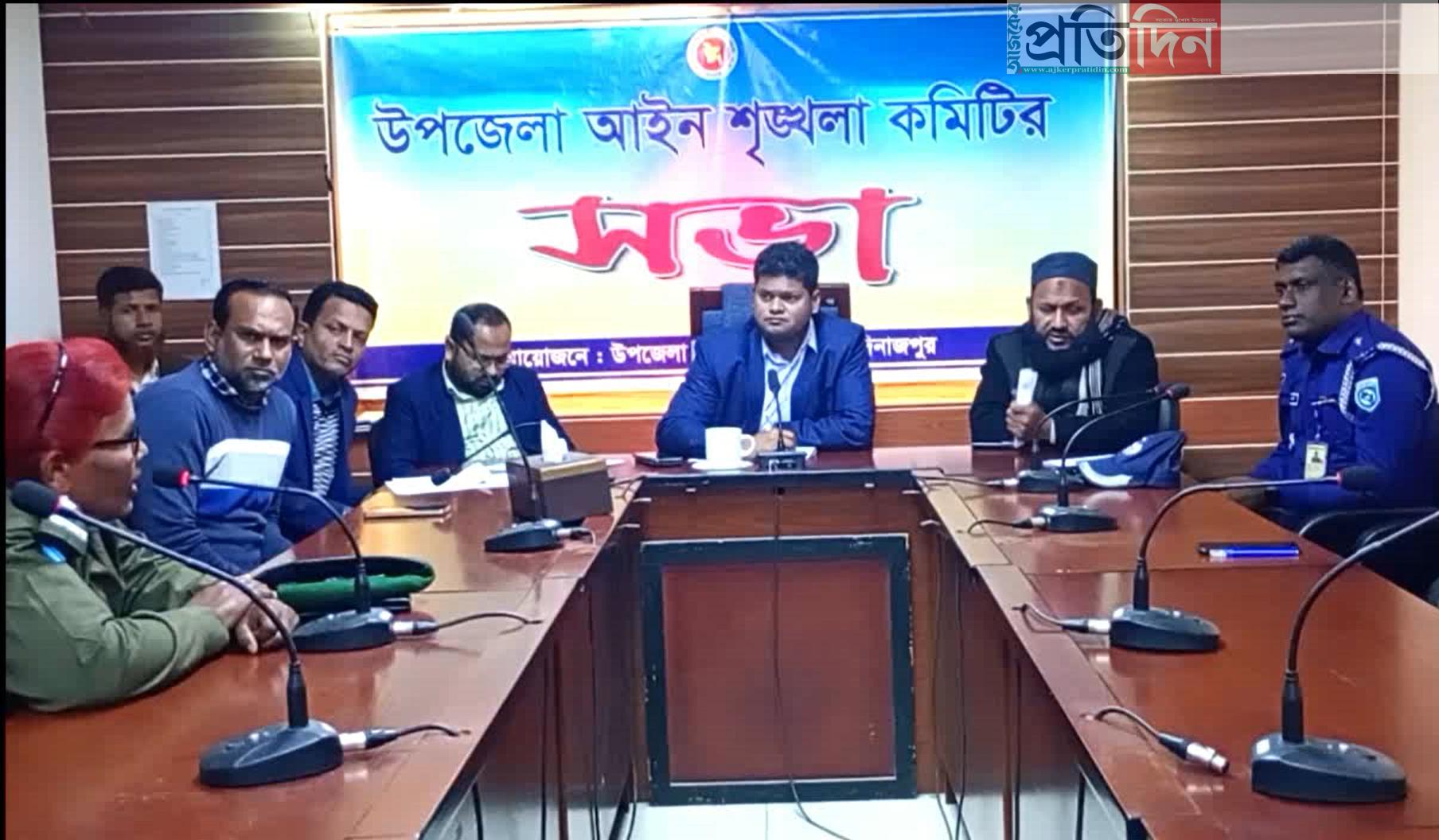 উপজেলা নির্বাহী কর্মকর্তা মীর মো. আল কামাহ তমাল এর সভাপতিত্বে এসময় উপস্থিত ছিলেন, ফুলবাড়ী পৌর প্রশাসক ও সহকারী কমিশনার (ভুমি) মুহাম্মদ জাফর আরিফ চৌধুরী, ফুলবাড়ী থানার তদন্ত ওসি মো. আল মামুন, উপজেলা বিএনপির ভারপ্রাপ্ত সভাপতি অধ্যক্ষ মওলানা নবিউল ইসলাম, উপজেলা আনছার ও ভিডিপি কর্মকর্তা রীতা গুপ্তা, খয়েরবাড়ী ইউপি চেয়ারম্যান (ভারপ্রাপ্ত) শামিম হোসেন, কাজিহাল ইউপি চেয়ারম্যান (ভারপ্রাপ্ত) মো. কাঞ্চন হোসেন সুজাপুর সরকারী মডেল উচ্চ বিদ্যালয়ের প্রধান শিক্ষক সঞ্জয় চক্রবতর্ী, জিএম পাইলট উচ্চ বিদ্যালয়ের প্রধান শিক্ষক মো. তোজাম্মেল হকসহ উপজেলা আইন শৃঙ্খলা কমিটির সকল সদস্য উপস্থিত ছিলেন। আইন শৃঙ্খলা কমিটির আলোচনা সভায় চলমান বিষয় বস্তু নিয়ে আলোচনা হয়।