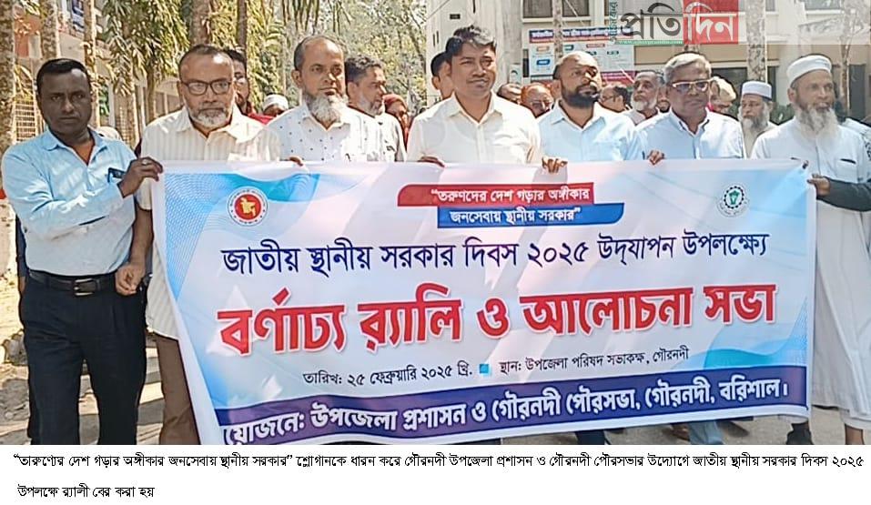 গৌরনদী প্রতিনিধি, মোঃ শফিকুল ইসলাম : “তারুণ্যের দেশ গড়ার অঙ্গীকার জনসেবায় স্থানীয় সরকার” শ্লোগানকে ধারন করে গৌরনদী উপজেলা প্রশাসন ও গৌরনদী পৌরসভার উদ্যোগে মঙ্গলবার সকালে গৌরনদীতে জাতীয় স্থানীয় সরকার দিবস ২০২৫ উদযাপন করা হয়।