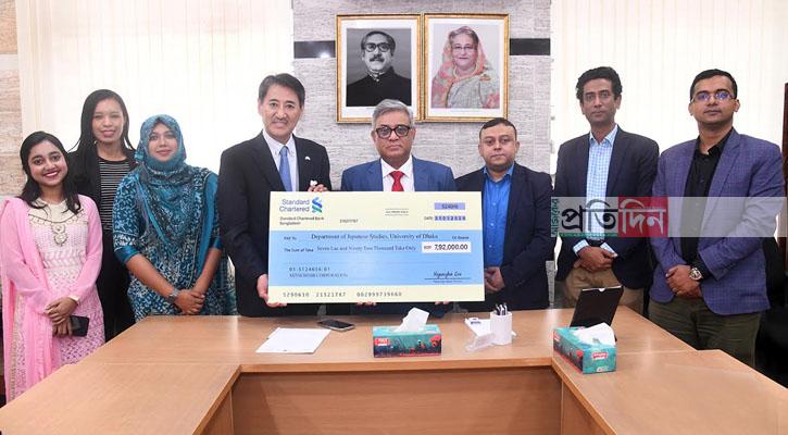 উপাচার্য দপ্তরে আয়োজিত এ চেক হস্তান্তর অনুষ্ঠানে জাপানিজ স্টাডিজ বিভাগের চেয়ারম্যান ড. মো. জাহাঙ্গীর আলম, সহযোগী অধ্যাপক ড. আব্দুল্লাহ-আল-মামুন, জনসংযোগ দপ্তরের পরিচালক মাহমুদ আলম এবং মিতসুবিশি কর্পোরেশনের কর্মকর্তারা উপস্থিত ছিলেন।
