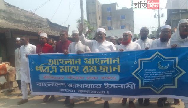 বাংদেশ জামায়াতে ইসলামীর কেন্দ্রীয় কর্মসূচীর অংশ হিসেবে কয়রা উপজেলা জামায়াতে ইসলামীর উদ্যোগে মাহে রমজান উপলক্ষে ২৭ ফেব্রুয়ারী সকাল ১১ টার সময় স্বাগত মিছিল অনুষ্ঠিত হয়েছে।মিছিল টি কয়রা সদর জামায়াতে ইসলামীর মোড় থেকে শুরু হয়ে বিভিন্ন সড়ক প্রদক্ষিণ করে উপজেলা পরিষদের সামনে যেয়ে শেষ হয়।