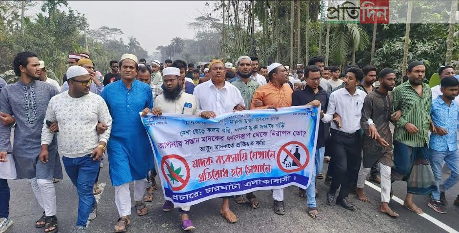 বিক্ষোভ মিছিলে ‘মাদক সেবনকারী ও বিক্রেতারা সাবধান’ ‘চল যাই যুদ্ধে, মাদকের বিরুদ্ধে’ ‘মাদককে না বলি, মাদকমুক্ত জীবন গড়ি’, নেশা ছেড়ে কলম ধরি মাদকমুক্ত সমাজ গড়ি’ বিভিন্ন মাদক বিরোধী বিভিন্ন স্লোগান দেন এলাকাবাসী। এ সময় সংক্ষিপ্ত সমাবেশে বিএনপি ও তার অঙ্গসংগঠন নেতা কর্মীরা বক্তব্য রাখেন।