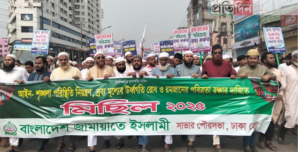 দ্রব্যমূল্যের ঊর্ধ্বগতি রোধের দাবিতে সাভারে জামায়াতের বিক্ষোভ মিছিল