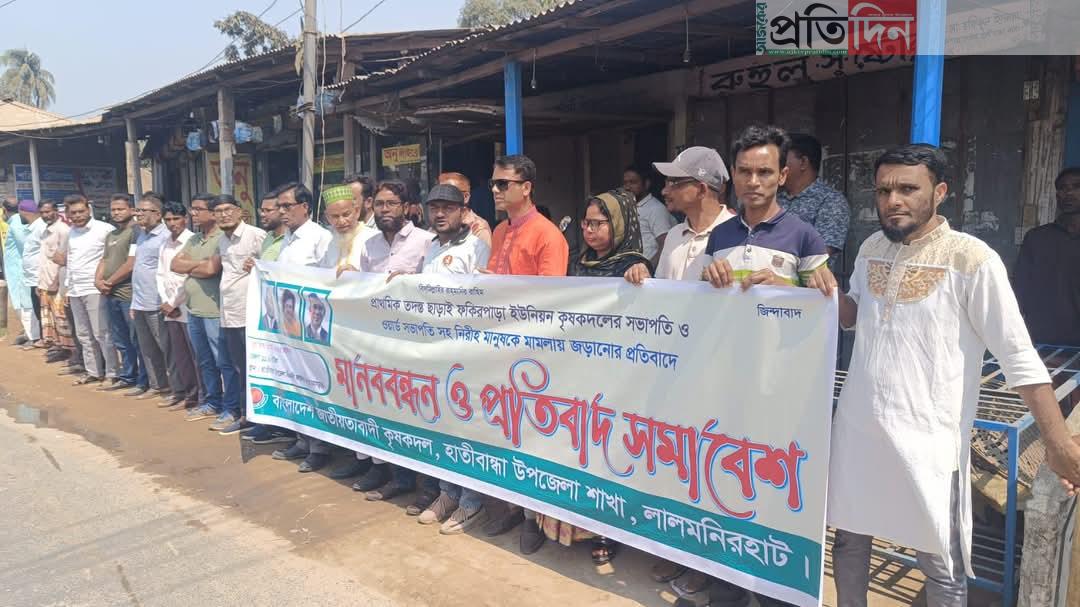 লালমনিরহাট প্রতিনিধিঃ লালমনিরহাটের হাতীবান্ধায় মামলার আসামীকে বাচাতে ভুয়া মানববন্ধন। আর এলাকাবাসী বলছে ৫ আগষ্টের আগে আওয়ামীলীগ এখন বিএনপি।