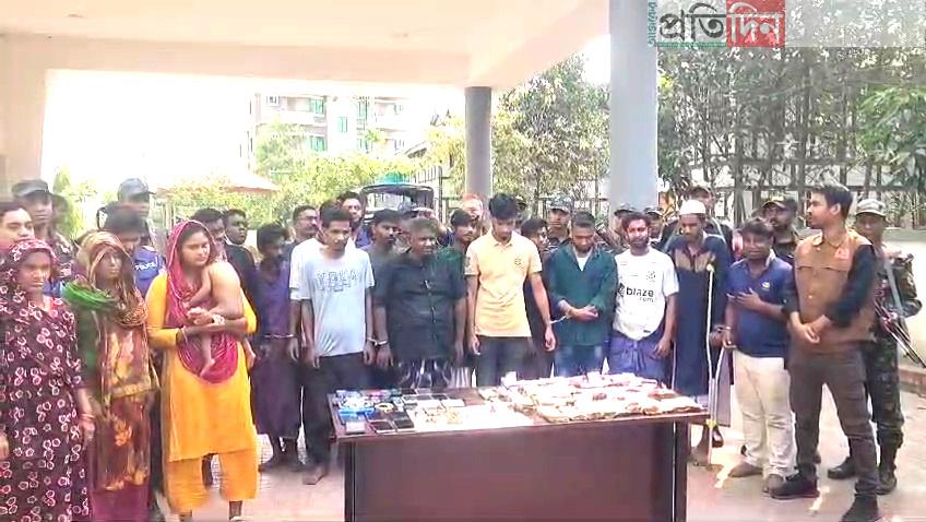 গ্রেপ্তারকৃতরা হচ্ছেন- মো. রাজন ইসলাম (২২),আবু তালহা (১৪), মোসা. ঝিনুক (২২), মোসা.সুমনা (৩৫), ফারজানা আক্তার (৩৫), ওমর ফারুক(৩৭), আজিজুল (১৭), মো. আকাশ (২৭), মো.নিরব (২০), মো. রানা (২০), মো. এনামুল (৫৫),মো. মাগরিব (২৪), মোয়াজ্জেম মাল (৫৫), মো.রাকিব হোসেন (৩৪), দুলাল বেপারী (২২), মো.জুয়েল (৪৯), আওলাদ হোসেন (২৬) ও মাহিন মোল্লাা (১৯)।