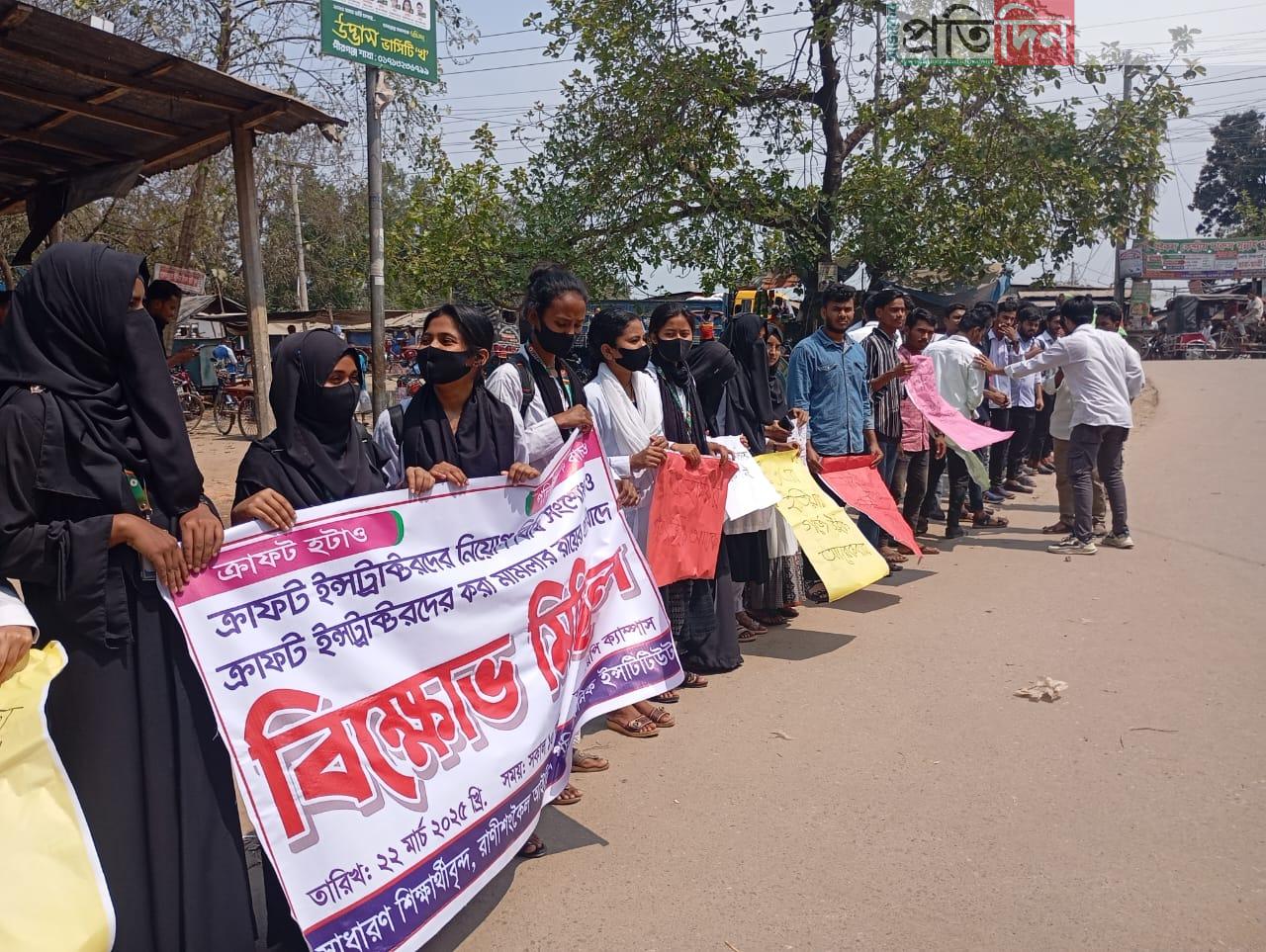 রাণীশংকৈলে পলিটেকনিক ইন্সটিটিউট শিক্ষার্থীদের বিক্ষোভ মিছিল ও মানববন্ধন