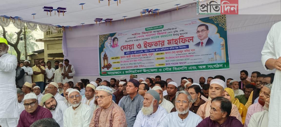 শনিবার -২২ মার্চ- কালিয়াকৈর পাইলট বালিকা উচ্চ বিদ্যালয়ের মাঠে দোয়া ও ইফতার মাহফিলে সভাপতিত্ব করেন কালিয়াকৈর উপজেলা বিএনপির সভাপতি সাবেক উপজেলা ভাইস চেয়ারম্যান ভিপি মুহাম্মদ হেলাল উদ্দিন।