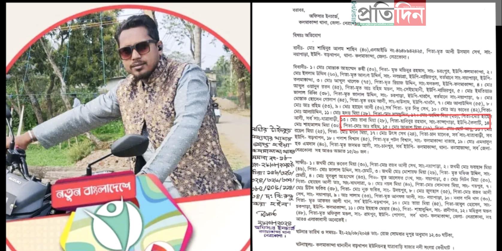 কিন্তু গত ২৬ শে আগস্ট জেলার কলমাকান্দা থানায় সাবেক এমপিসহ ১৯ জনের নাম উল্লেখ করে এবং ১৫/২০ কে অজ্ঞত দিয়ে শাহিনুর আলম শাহিন মানে এক ব্যাক্তি চাঁদা বাজি ও নাশকতা মামলা দায়ের করেন। এই মামলার ১৩/ নাম্বার আসামী মোঃ রানা মিয়া ( আবির আহমেদ রানা ওরফে রানা আকন্দ) পিতা- হাবিবুর রহমান, সাং-কান্দাপাড়া, ইউপি- কৈলাটি, থানা-কলমাকান্দা, জেলা নেত্রকোনা।