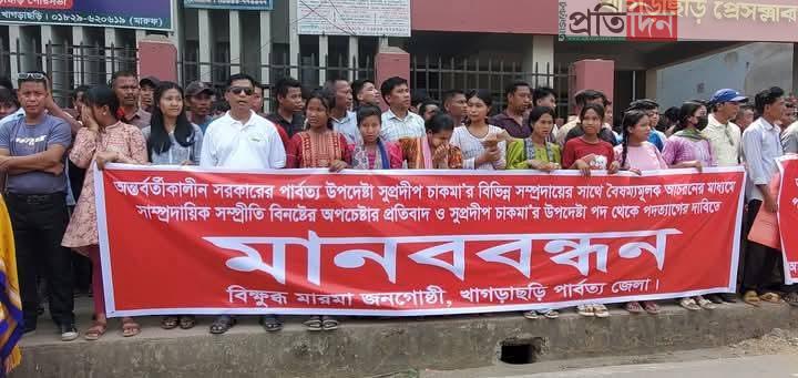 পার্বত্য চট্টগ্রামে বৈষম্যমূলক বরাদ্দের প্রতিবাদে খাগড়াছড়িতে বিক্ষোভ মিছিল ও মানববন্ধন