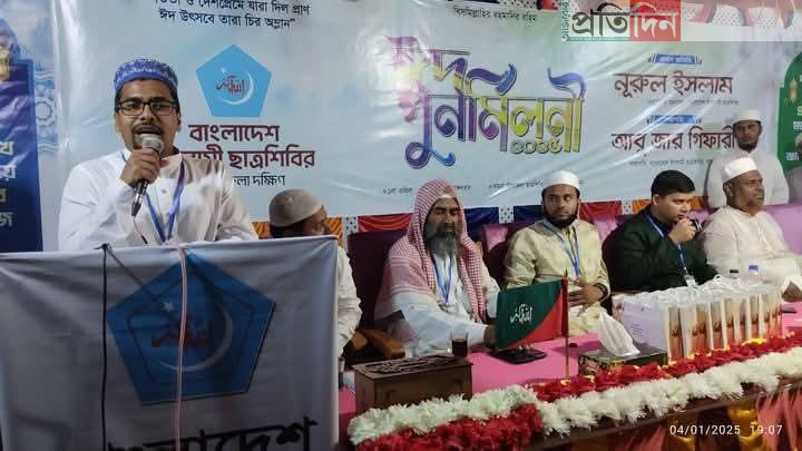 খুলনার কয়রা উপজেলায় বাংলাদেশ ইসলামী ছাত্রশিবির খুলনা জেলা দক্ষিণের উদ্যোগে ছাত্রশিবিরের সাবেক ও বর্তমান দায়িত্বশীল ভাইদেরকে নিয়ে ঈদ পুণর্মিলনী অনুষ্ঠিত হয়েছে। মঙ্গলবার (০১) এপ্রিল বেলা ৩ টায় কয়রা উপজেলা ছাত্রশিবিরের অডিটোরিয়ামে এ সভা অনুষ্ঠিত হয়। ছাত্রশিবির খুলনা জেলা দক্ষিণের সভাপতি আবু জার গিফারীর সভাপতিত্বে ও সেক্রেটারি ওয়েজকুরুনীর সঞ্চালনায় ঈদ পুণর্মিলনী অনুষ্ঠানের আয়োজন করা হয়।