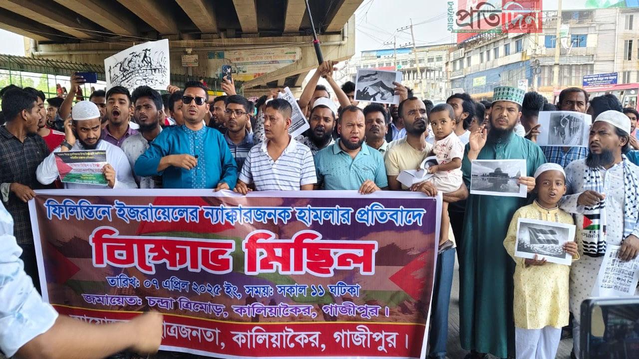 ফিলিস্তিনে ইসরায়েলী হামলার প্রতিবাদে কালিয়াকৈরে বিক্ষোভ মিছিল