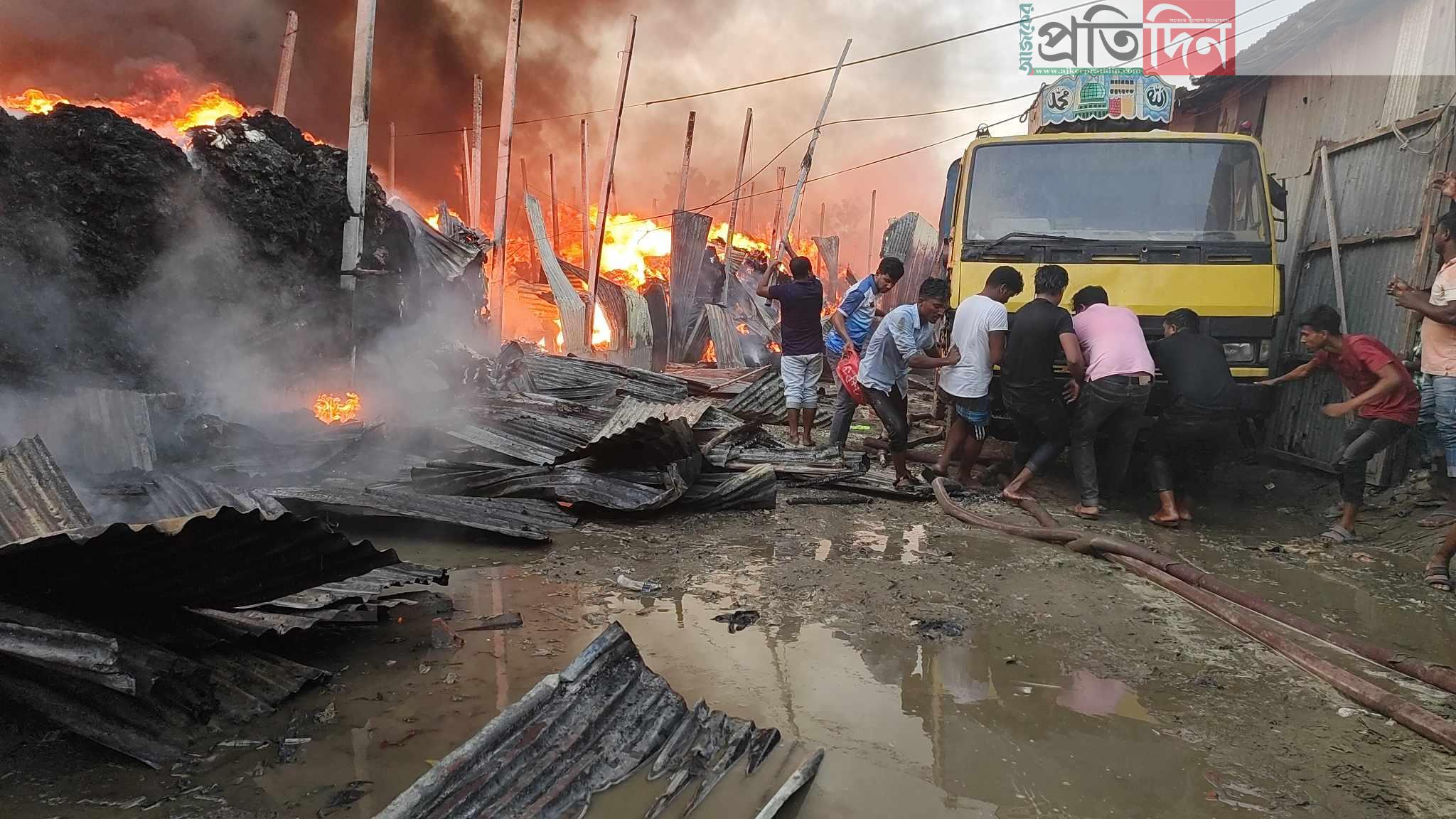 প্রত্যক্ষদর্শীদের ভাষ্যমতে, আগুনের সূত্রপাত হওয়ার পর স্থানীয় লোকজন নিজেরা চেষ্টা করেন আগুন নেভানোর জন্য। কিন্তু বাতাস দাহ্য পদার্থ থাকার কারণে আগুন দ্রুত চারদিকে ছড়িয়ে পড়ে। পরিস্থিতি ভয়াবহ রূপ নিলে দ্রুত ফায়ার সার্ভিসকে খবর দেওয়া হয়।
