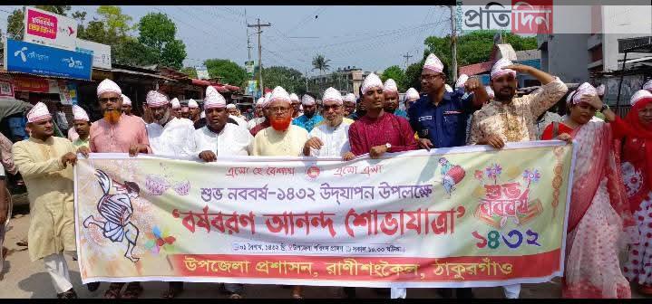 ঠাকুরগাঁওয়ের রাণীশংকৈলে নানা আয়োজনে বাংলা নববর্ষ ১৪৩২ উদযাপন উপলক্ষে আনন্দ শোভাযাত্রা,দিনব্যাপী লোকজ মেলা ও সাংস্কৃতিক অনুষ্ঠানের আয়োজন করে উপজেলা প্রশাসন।