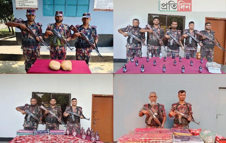 গতকাল মঙ্গলবার ১৫ এপ্রিল বিজিবি’র যশোর ব্যাটালিয়ন (৪৯ বিজিবি) এর টহলদল বেনাপোলের আমাড়াখালী চেকপোস্ট সীমান্ত এলাকায় মাদক ও চোরা চালান বিরোধী পৃথক অভিযান পরিচালনা করে বিদেশী মদ, গাঁজা, ফেন্সিডিল, শাড়ী, বিভিন্ন প্রকার চকলেট এবং কসমেটিক্স আটক করে। আটককৃত মালামালের মূল্য (পাঁচ লক্ষ চল্লিশ হাজার নয়শত) টাকা।