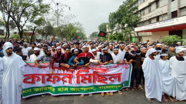 মাথায় কাফনের কাপড় বেঁধে পলিটেকনিক শিক্ষার্থীদের মিছিল