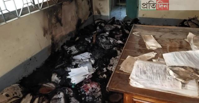 ইউনিয়ন প্রশাসনিক কর্মকর্তা দুজন ইউপি সদস্যের অনুপস্থিতির ঠুনকো অজুহাত দেখিয়ে তদন্তের সময় একদিন বাড়িয়ে নেন। আর ঠিক আগের রাতেই ঘটে রহস্যজনক অগ্নিকাণ্ডের ঘটনা। এতে সকলের মনে সন্দেহের দানা বাধে। এ বিষয়ে ইউনিয়ন পরিষদের নৈশপ্রহরী (চৌকিদার) ফজলুল হক জানান,ওই রাতে আমি পাশের দোকানে টিভি দেখে এসে রাত ৩ টার দিক ঘুমিয়ে পড়ি। ফজরের নামাজের আগে পরিষদ চত্বরের মসজিদের মুয়াজ্জিন ওই অফিসরুম থেকে ধোঁয়া বের হতে দেখে আমাকে জানান। আমি দ্রুত রুমের জানালা খুলে স্থানীয়দের সহায়তায় পানি ঢেলে রুমের ভিতরের আগুন নিভাতে সক্ষম হই।