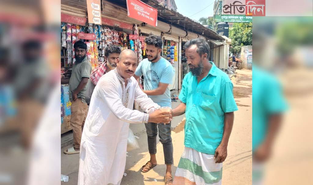 আশুলিয়ায় তীব্র গরমে তৃষ্ণার্ত মানুষের পাশে বিশিষ্ট সমাজসেবক ও রাজনীতিবিদ হামিদ মন্ডল