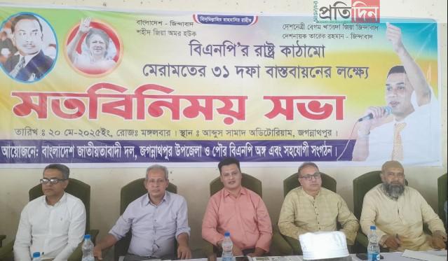 জগন্নাথপুর প্রতিনিধি : রাষ্ট্র কাঠামো মেরামতে বাংলাদেশ জাতীয়তাবাদী দল বিএনপি ঘোষিত ৩১ দফা বাস্তবায়নের লক্ষ্যে সুনামগঞ্জ জেলার জগন্নাথপুর উপজেলা ও পৌর বিএনপি এবং অঙ্গ সহযোগী সংগঠনের আয়োজনে মতবিনিময় সভা অনুষ্ঠিত হয়েছে। গতকাল মঙ্গলবার (২০শে মে) দুপুরে জগন্নাথপুর আব্দুস সামাদ আজাদ অডিটোরিয়ামে অনুষ্ঠিত মতবিনিময় সভায় প্রধান অতিথির বক্তব্য রাখেন, সুনামগঞ্জ জেলা বিএনপির আহ্বায়ক কমিটির সিনিয়র সদস্য নাদের আহমদ।