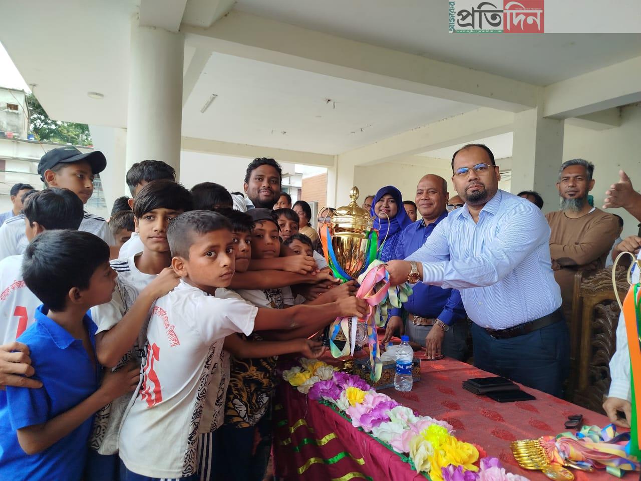 খেলা শেষে রানার্সআপ ও চ্যাম্পিয়ন দলের খেলোয়াড়দের হাতে মেডেল, ক্রেস্ট ও ট্রফি তুলে দেন প্রধান অতিথিসহ অন্যান্য অতিথিবৃন্দ।
