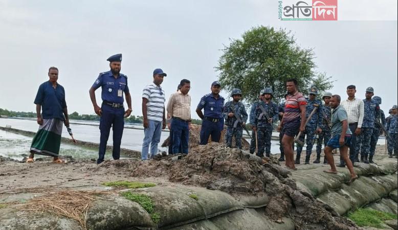 কয়রায় বেড়িবাঁধের অবৈধ পাইপ অপসারণ