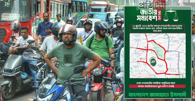 সমাবেশ ঘিরে যানজট ও যান চলাচলে বিঘ্ন ঘটায় সাময়িক অসুবিধার জন্য নগরবাসীর কাছে দুঃখ প্রকাশ করেছে জামায়াত। জামায়াতের ভেরিফায়েড ফেসবুক পেজে একটি গুগল ম্যাপের ছবি পোস্ট করে এ দুঃখ প্রকাশ করা হয়েছে।