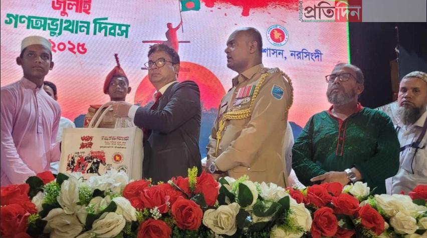জুলাই গণঅভ্যুত্থান দিবসে মঙ্গলবার নরসিংদী শিল্পকলা একাডেমিতে অতিরিক্ত জেলা প্রশাসক ( সার্বিক) আবু তাহের মো.শামসুজ্জামানের সভাপতিত্বে প্রধান অতিথি হিসেবে বক্তব্য রাখেন নরসিংদী জেলা প্রশাসক মোহাম্মদ রাশেদ হোসেন চৌধুরী।