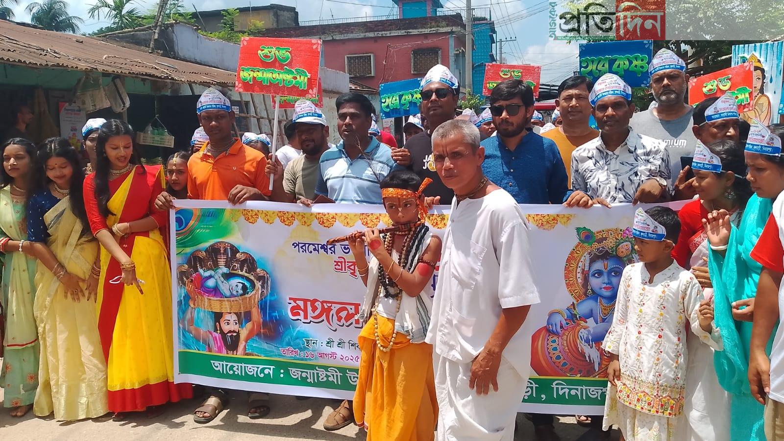 ফুলবাড়ী জন্মাষ্টমী পরিষদের আয়োজনে সকাল ১১ টায় স্থানীয় শীবমন্দির চত্বরে থেকে একটি শোভাযাত্রা বের করা হয়। শোভাযাত্রাটি পৌর শহর প্রদক্ষিণ করে শীবমন্দিরে এসে শেষ হয়।
