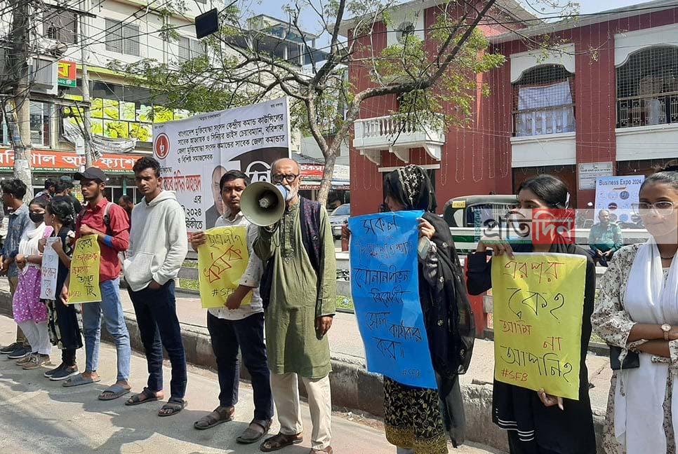 শনিবার (১০ ফেব্রুয়ারি) সকাল ১১টায় নগরীর সদর রোডের অশ্বিনী কুমার হল চত্বরে জেলা ছাত্র ফেডারেশনের উদ্যোগে এই মানববন্ধন অনুষ্ঠিত হয়।