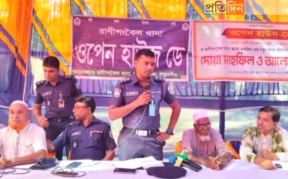 রাণীশংকৈল (ঠাকুরগাঁও) প্রতিনিধি : ঠাকুরগাঁওয়ের রাণীশংকৈলে থানা পুলিশের ওপেন হাউজ ডে বৃহস্পতিবার (২৮ আগষ্ট) অনুষ্ঠিত হয়। থানা পুলিশের আয়োজনে এবং থানা ভারপ্রাপ্ত কর্মকর্তা (ওসি) আরশেদুল হকের সভাপতিত্বে অনুষ্ঠানে প্রধান অতিথি হিসেবে বক্তব্য রাখেন সহকারী পুলিশ সুপার (রাণীশংকৈল সার্কেল) স্নেহাশিষ চন্দ্র দাস।