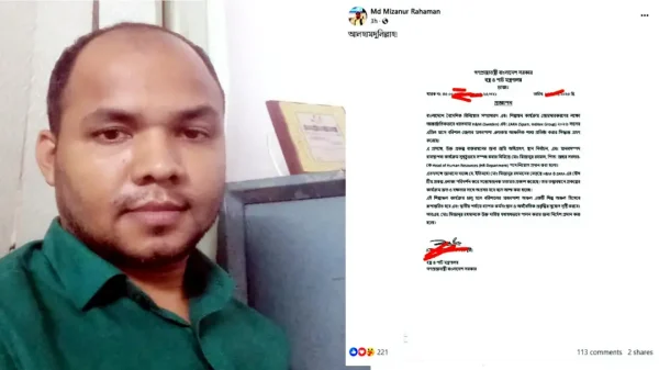 মাধবপাশা চন্দ্রদ্বীপ হাইস্কুল ও কলেজের এডহক কমিটি গঠন প্রক্রিয়া প্রায় ৭ মাস আটকে রাখা এবং জেলা প্রশাসককে মিথ্যা অভিযোগ দিয়ে নাজেহাল করায় সর্বমহলে আলোচিত এক নাম হয়ে ওঠেন মিজানুর রহমান। সরাসরি কোনো রাজনৈতিক দলের পদ-পদবি ধারণ না করলেও তাকে নিয়ে মানুষের কৌতুহল বাড়তে থাকে। ফলে মাধবপাশা এলাকায় তার ভক্ত-অনুসারীর সংখ্যাও বেড়ে যায়। এদিকে এই সুযোগকে কাজে লাগিয়ে কয়েকদিন আগে তিনি নিজের ফেসবুক ওয়ালে একটি সরকারি প্রজ্ঞাপনের চিঠি পোস্ট করে লেখেন আলহামদুলিল্লাহ। বস্ত্র ও পাট মন্ত্রণালয়ের সচিব স্বাক্ষরিত ওই প্রজ্ঞাপনের বলা হয়- বাংলাদেশে বৈদেশিক বিনিয়োগ সম্প্রসারণ এবং শিল্পায়ন কার্যক্রম জোরদারকরণের লক্ষ্যে আন্তর্জাতিক খ্যাতনামা সুইডেনের এইচ অ্যান্ড এম কর্পোরেশন এবং স্পেনের ইন্ডিটেক্স গ্রুপের জারা সংস্থা ২০২৬ সালের এপ্রিল মাসে বরিশালের বাবুগঞ্জ উপজেলার মাধবপাশা এলাকায় তাদের আঞ্চলিক শাখা প্রতিষ্ঠার উদ্যোগ গ্রহণ করেছে। ওই প্রকল্প বাস্তবায়নের জন্য স্থান নির্বাচন, জমি অধিগ্রহণ, জনবল নিয়োগ ও মানবসম্পদ ব্যবস্থাপনা কার্যক্রম সুষ্ঠুভাবে সম্পাদনের জন্য হেড অব হিউম্যান রিসোর্স ডিপার্টমেন্ট হিসেবে জনাব মিজানুর রহমানকে নিয়োগ প্রদান করা হলো। এইচআর ডিপার্টমেন্টের প্রধান হিসেবে মিজানুর রহমানের নেতৃত্ব এই প্রকল্পের জমি অধিগ্রহণ ও জনবল নিয়োগসহ যাবতীয় কার্যক্রম পরিচালিত হবে। প্রজ্ঞাপনের চিঠিতে আরও বলা হয়- এই প্রকল্প বাস্তবায়িত হলে মাধবপাশা এলাকা একটি শিল্পাঞ্চলে রূপান্তরিত হবে। এতে স্থানীয় পর্যায়ে ব্যাপক কর্মসংস্থান সৃষ্টি ও অর্থনৈতিক প্রবৃদ্ধি অর্জনের সুযোগ সৃষ্টি হবে বলে আশা প্রকাশ করা হয়। একই সাথে মিজানুর রহমানকে তার এইচআর প্রধানের দায়িত্ব যথাযথভাবে পালনের নির্দেশ এবং সকলকে সহযোগিতার আহ্বান জানানো হয়। বস্ত্র ও পাট মন্ত্রণালয় থেকে জারিকৃত ওই প্রজ্ঞাপনের চিঠি মিজানুর রহমানের ফেসবুক আইডিতে আপলোডের পরে শুরু হয় তোলপাড়। মাধবপাশা অঞ্চলে এমন এক ঐতিহাসিক শিল্পাঞ্চল গড়ে ওঠা এবং তা বাস্তবায়নে প্রধান দায়িত্ব পাওয়া মিজানুর রহমান নেটিজেনদের শুভেচ্ছা এবং অভিনন্দনে ভাসতে থাকেন। মুহূর্তেই এই পোস্ট ভাইরাল হয়ে যায় এবং সেটা পাট অধিদপ্তরের মহাপরিচালকের দৃষ্টিগোচর হয়। তবে সতর্কতা হিসেবে মন্ত্রণালয়ের ওই ভুয়া প্রজ্ঞাপনের চিঠিটা ফেসবুকে আপলোডের আগে সচিবের নামের অংশ, স্মারক নম্বর এবং তারিখের জায়গা লাল রং দিয়ে ঢেকে দেন তিনি।
