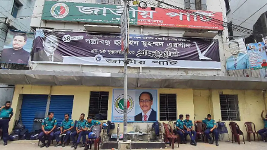 জাপার কার্যালয়ের সামনে পুলিশের সতর্ক অবস্থান