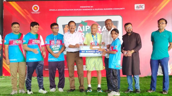 নরসিংদীর রায়পুরায় উৎসব মুখর পরিবেশে ম্যারাথন প্রতিযোগিতা অনুষ্ঠিত