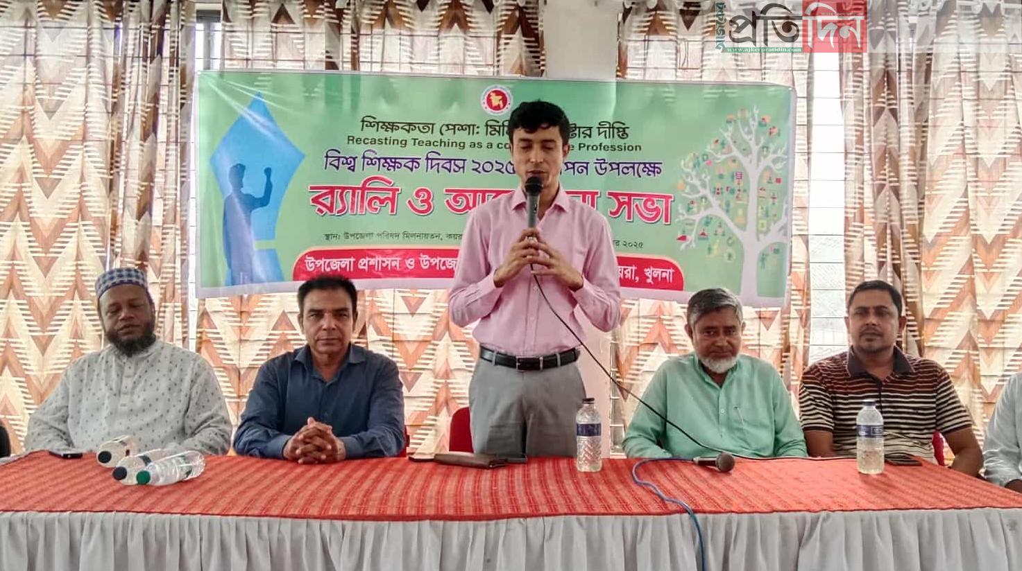 জাহিদুল ইসলাম, কয়রা (খুলনা) প্রতিনিধিঃ 'শিক্ষক শুধু পাঠদাতা নন, তিনি সমাজ গঠনের কারিগর। জাতি গঠনে শিক্ষকের অবদান অনস্বীকার্য।'—এই মহান বাণীকে সামনে রেখে খুলনার কয়রায় উৎসবমুখর পরিবেশে পালিত হলো বিশ্ব শিক্ষক দিবস-২০২৫। এই বছরের প্রতিপাদ্যকে ধারণ করে রবিবার (৫ অক্টোবর, ২০২৫) সকালে কয়রা উপজেলা পরিষদ প্রাঙ্গণে শিক্ষক, শিক্ষার্থী ও সুধীজনদের পদচারণায় মুখরিত হয়ে ওঠে।