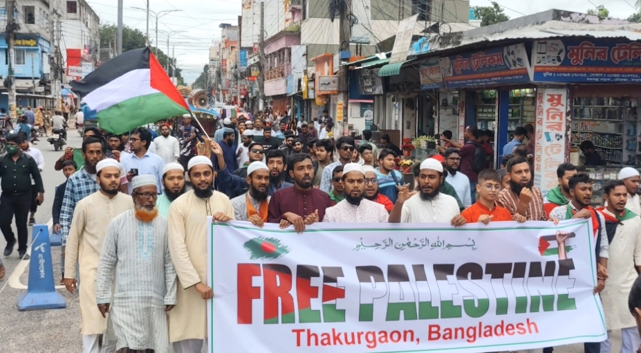 অবিলম্বে ফিলিস্তিনকে স্বাধীন রাষ্ট্র হিসেবে স্বীকৃতি দিতে ঠাকুরগাঁওয়ে বিক্ষোভ মিছিল ও সমাবেশ