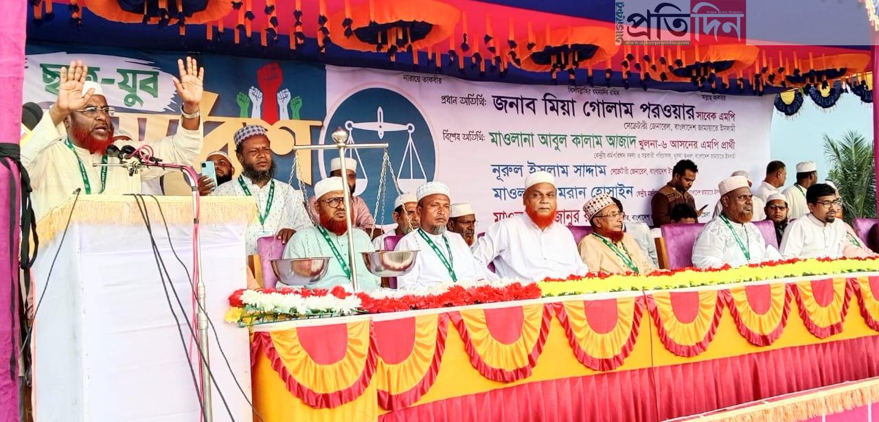 ফ্যাসিবাদ ও দুর্নীতির বিরুদ্ধে 'দ্বিতীয় যুদ্ধ' অধ্যাপক পরওয়ার তার বক্তব্যে ছাত্র-জনতাকে ঐক্যবদ্ধ হওয়ার আহ্বান জানিয়ে বলেন, "চব্বিশের গণআন্দোলনের ছাত্র-জনতার যুদ্ধ ছিল ফ্যাসিবাদের বিরুদ্ধে। আর আমাদের দ্বিতীয় যুদ্ধ হলো দুর্নীতির বিরুদ্ধে।" তিনি জাতীয় সংসদ নির্বাচনের মাধ্যমে ইসলামের পক্ষের শক্তিকে নির্বাচিত করে 'দ্বিতীয় যুদ্ধ' জয়ের আহ্বান জানান। বিগত সময়ে জামায়াতে ইসলামী মন্ত্রণালয়ের দায়িত্বে থাকাকালীন কোনো দুর্নীতি হয়নি দাবি করে তিনি বলেন, "এদেশের মানুষ সব দলকে দেখেছে, এবার ইসলাম পন্থী নির্বাচিত করে দেশের সার্বভৌমত্ব রক্ষা করবে ইনশাআল্লাহ।"