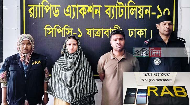 আটক ব্যক্তিরা হলেন সালমা আক্তার সুরাইয়া (২৪) ও মো. আবু সাঈদ (৩০)।